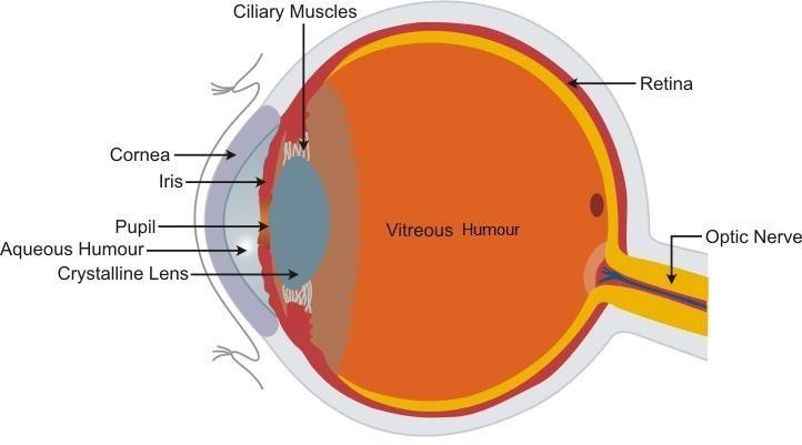 | Eye lens | Adjust the focal length and form an inverted image of the object on the retina |