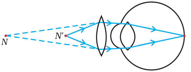, where d is the least distance of distinct vision and x′ is the distance of near point N of the hypermetropic eye.