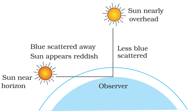(d) light of all other colours is scattered more than the violet and blue colour lights by the atmosphere.